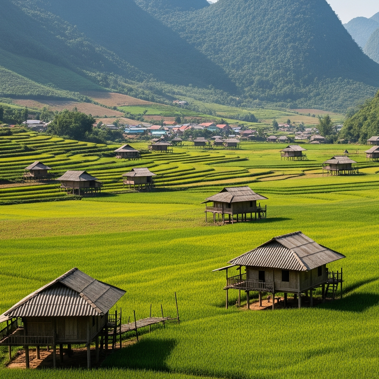 On Day 3, travel from Hanoi to Mai Chau – a quiet valley town surrounded by green hills, located 135 km away (3-4 hours by bus).