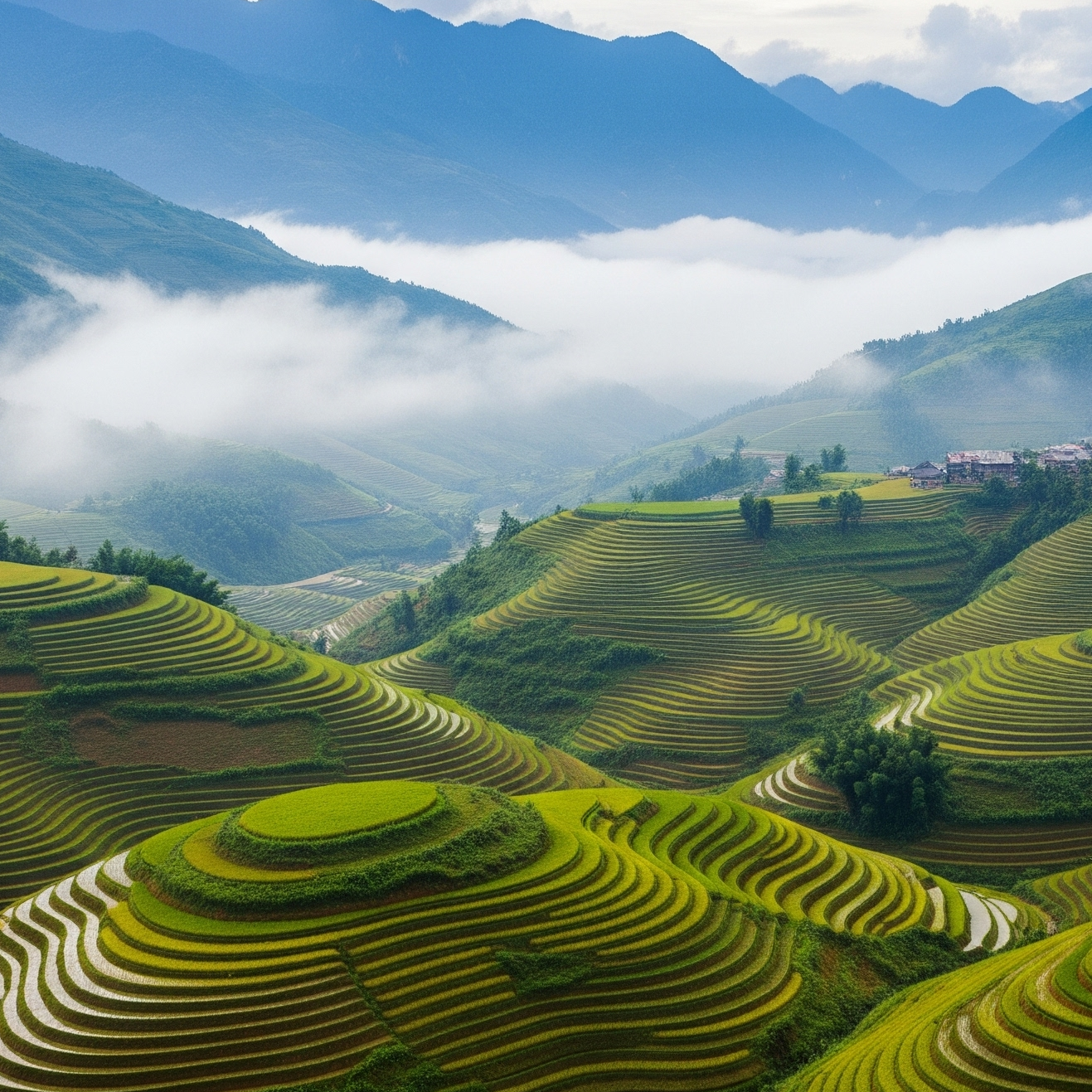 Travel from Mai Chau to Sapa, located about 373 km away. It’s a long journey (around 14-15 hours by bus), but absolutely worth it.